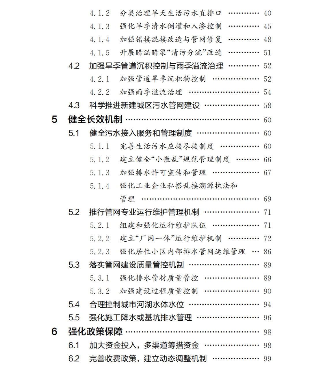 本指南的主要内容包括:总体要求、加强系统谋划、实施排查检测、完善管网体系、健全长效机制、强化政策保障。
