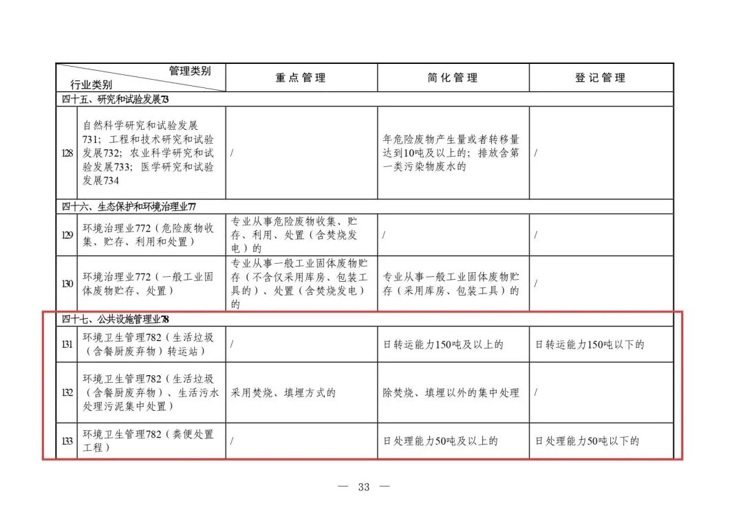 环境卫生管理纳入排污许可管理范畴!生态环境部发布《固定污染源排污许可分类管理名录(修订征求意见稿)》