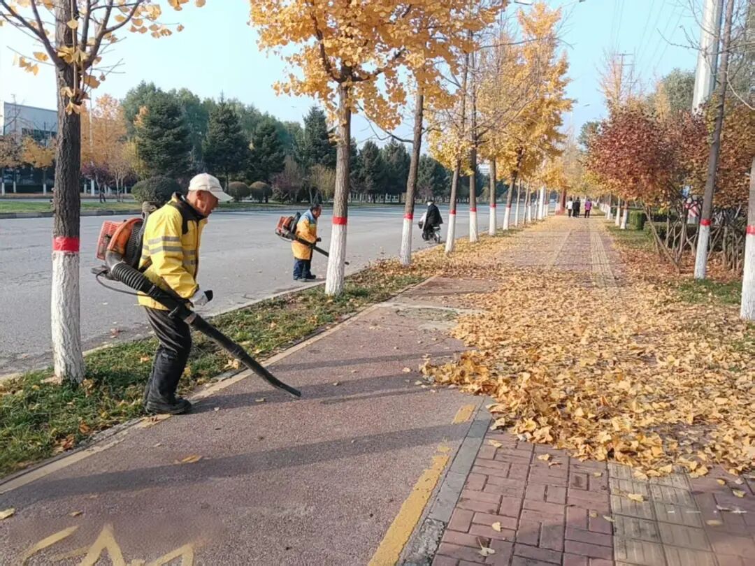 为应对秋季落叶,确保城区环境整洁,润义集团科学调配保洁力量,采取“人工+机械”协同作业模式,对主次干道展开全覆盖清扫,及时收集落叶并集中清运。针对落叶密集路段,增派人员,加强巡回保洁,做到随落随清、不留死角,全力维护道路洁净。